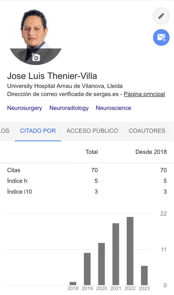 This section summarizes the public recognition received by Dr. José Luis Thenier-Villa.